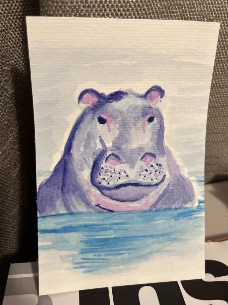 WATERCOLOR – HIPPO VALENTINE