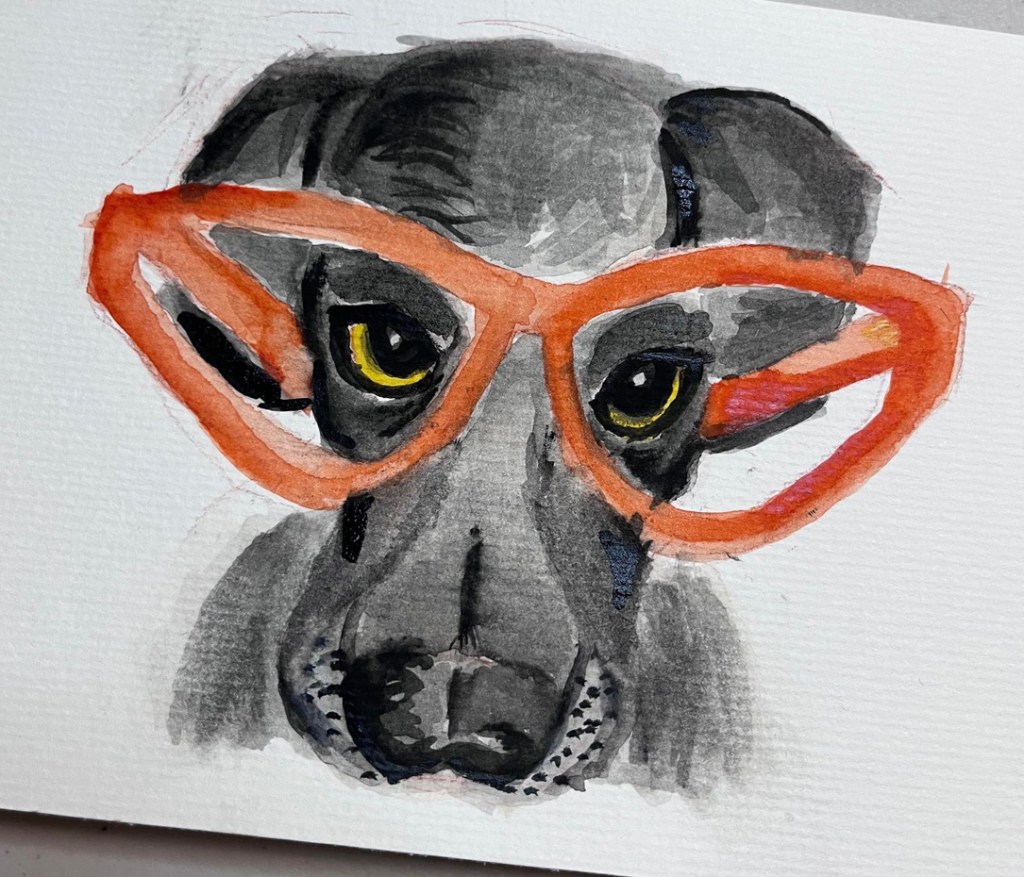 A friend of mine was kind enough to approach me on painting this pup for a friend of hers. I am STILL working on my watercolors and worked from a photo. The pup sadly passed on so this painting will live on as a memorial. I hope I did their dog justice! Thank you for this opportunity to grow my skills, Shelly!
